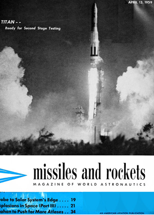 на обложке - Обширные ракетные исследования в туннеле сверхзвукового давления NACA размером 4 х 4 фута в Лэнгли. Авиационная лаборатория предоставила значительный объем данных для отрасли. Тот факт, что NACA активно занимается ракетными исследованиями, не получил широкой огласки; Missiles & Rockets попросили доктора Хью Л.Драйдена рассказать о роли НАСА в этом отношении. Его статья опубликована на странице 44.