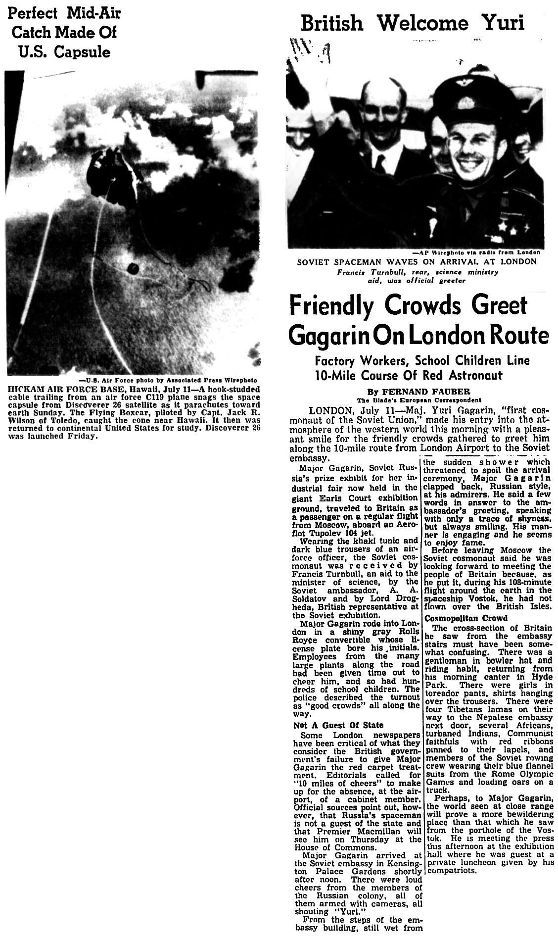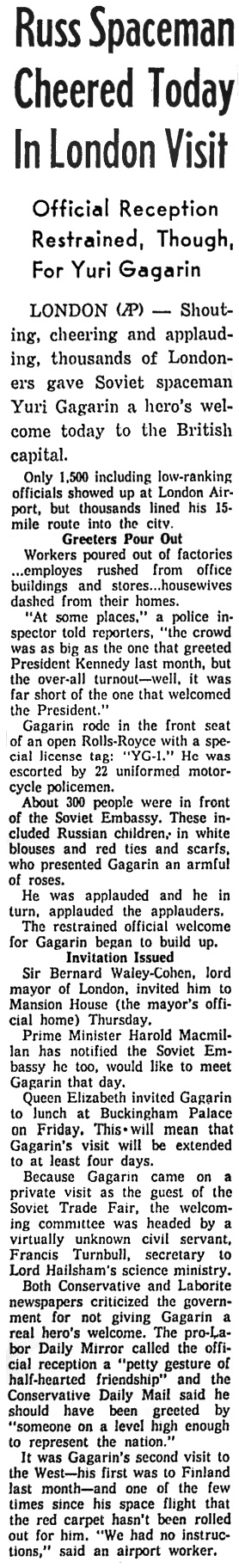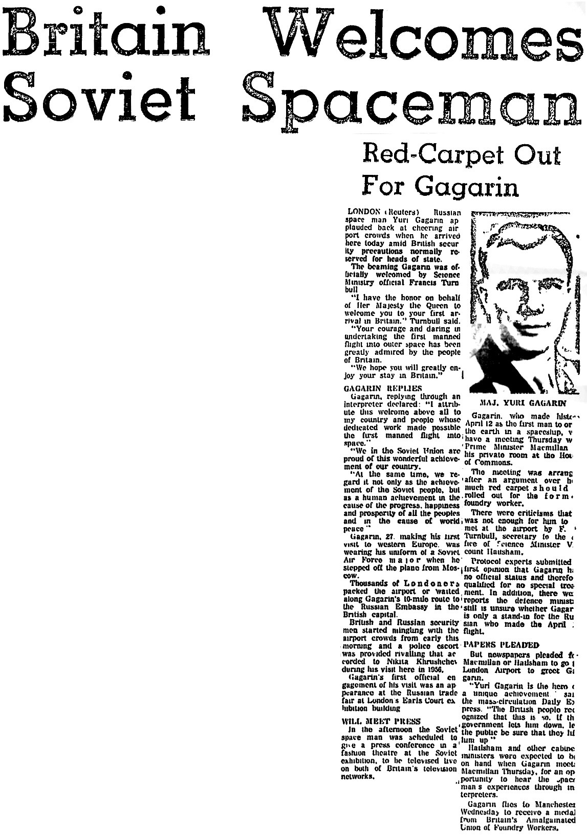 - *Гагарин покидает Лондон (сайт не открывается) (на англ.) «Edmonton Journal», 15.07.1961