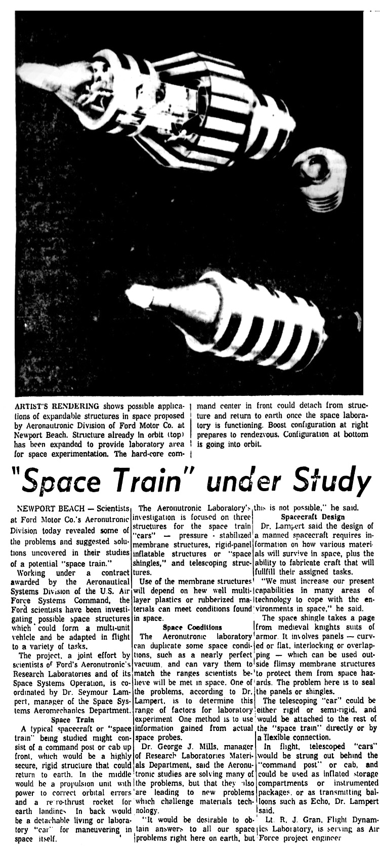 Национальное управление по аэронавтике и исследованию космического пространства заключило исследовательский контракт на сумму $150’000 с корпорацией «Дуглас Эйркрэфт». Эта фирма должна разработать технологию орбитального расположения и выработать технические требования для необходимого проекту космического аппарата.