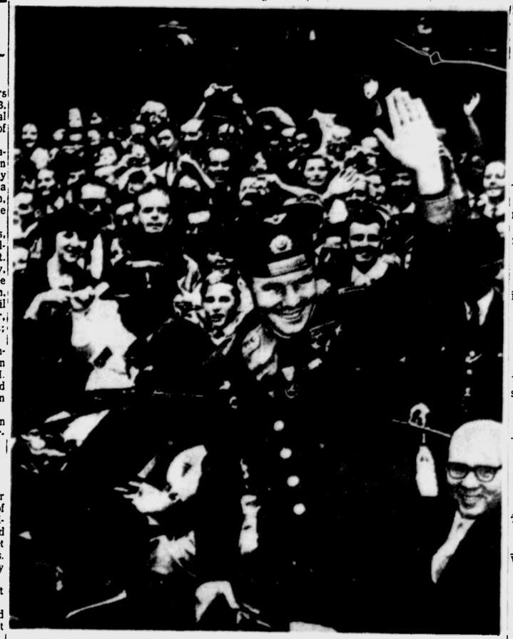 Это будет либо 35-летний капитан ВВС Вирджил А. Гриссом из Митчелла, штат Индиана, или 39-летнй подполковник морской пехоты Джон Г. Гленн из Нью-Конкорда, штат Огайо.