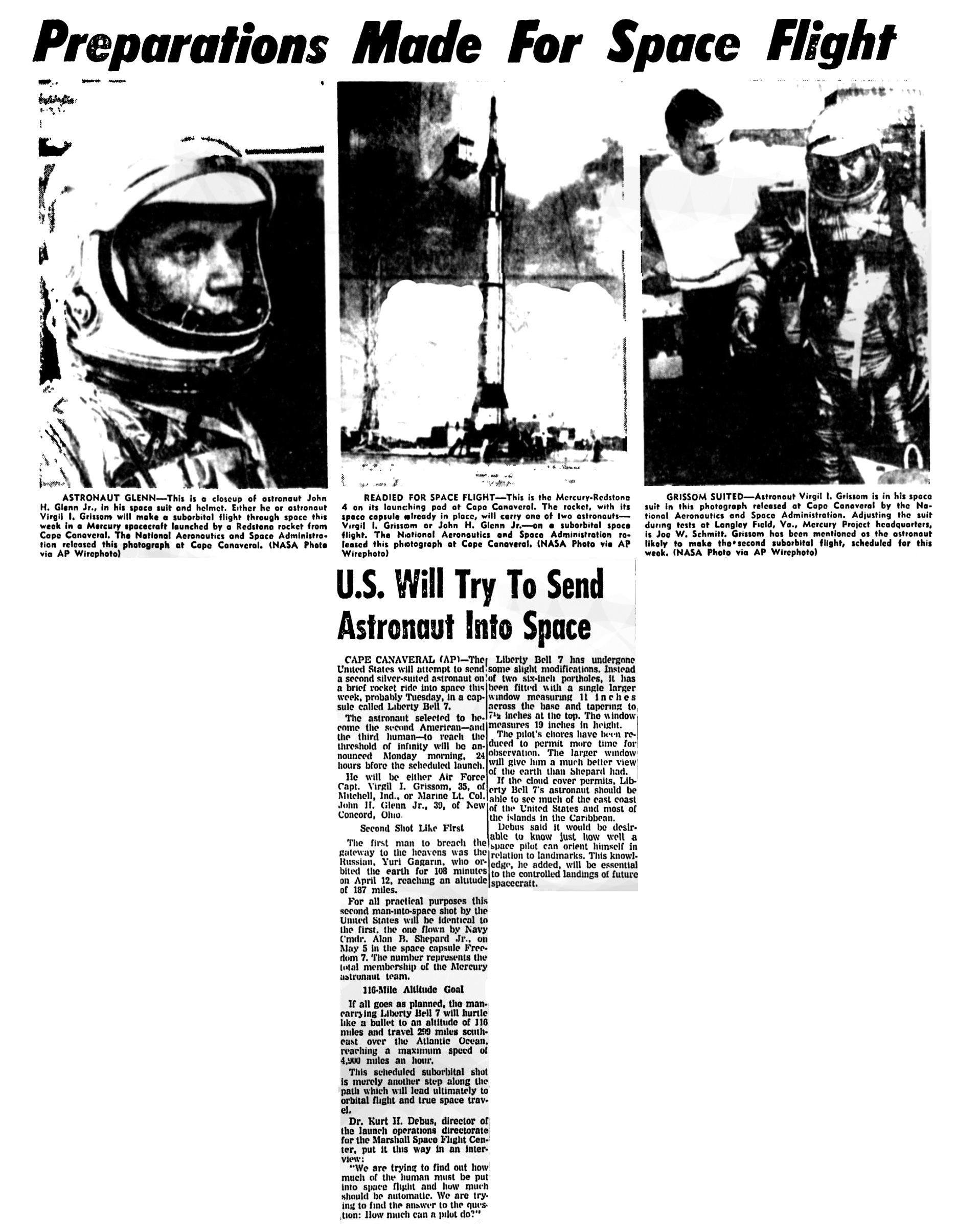 - *Подготавливается к космическому полету (Readied For Space Flight) (на англ.) «Eugene Register-Guard», 16.07.1961 в jpg - 365 кб