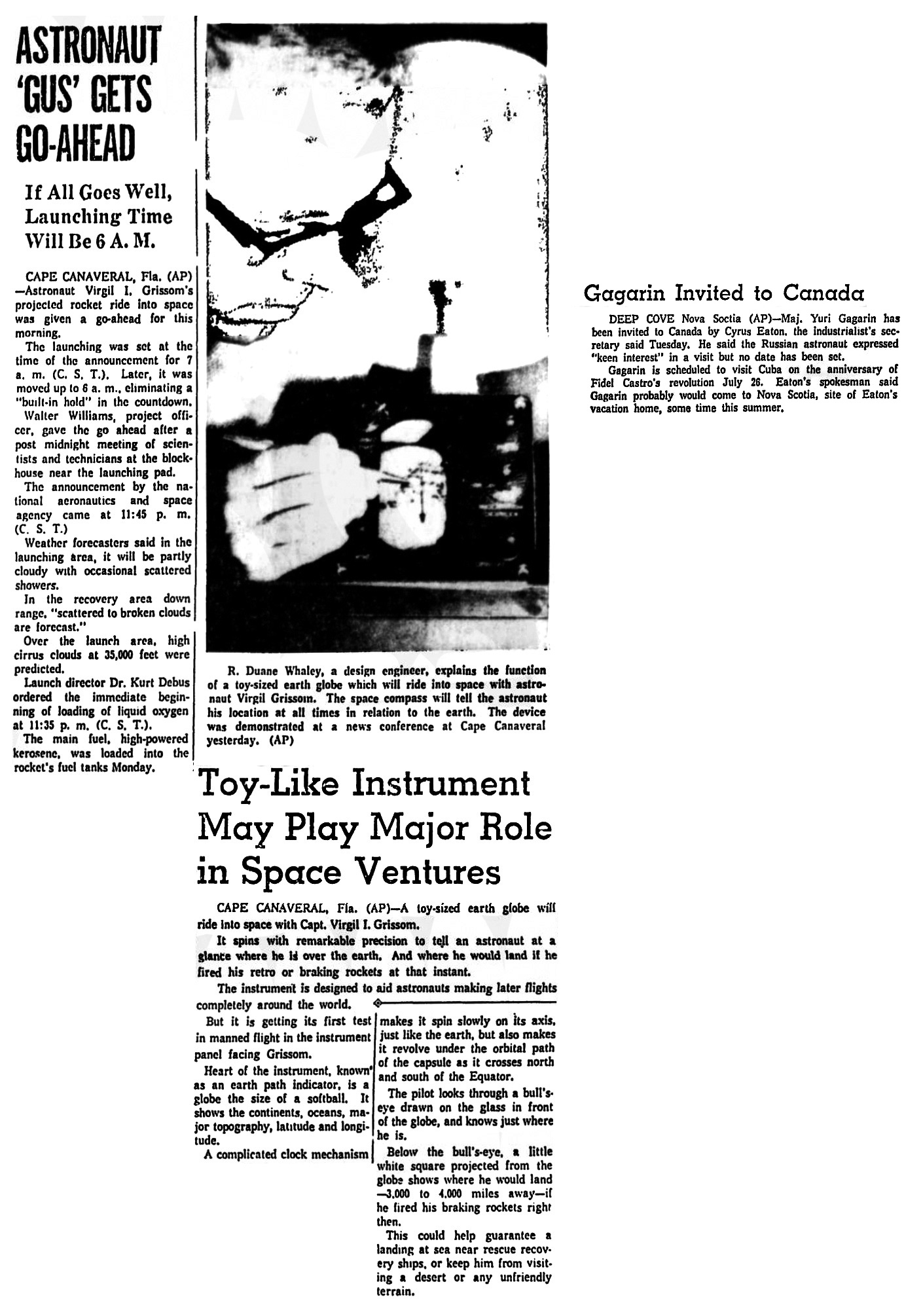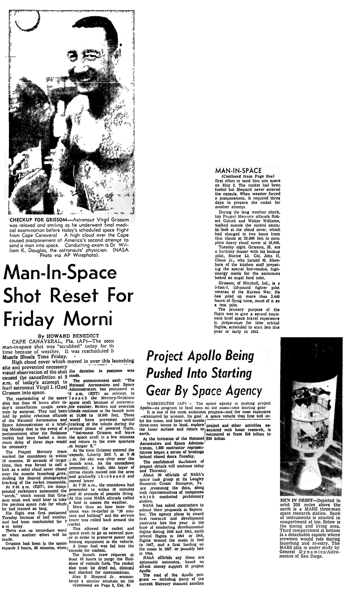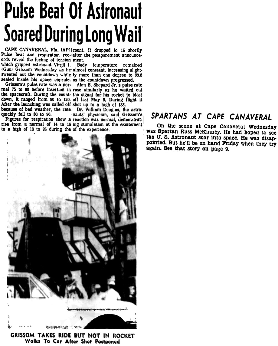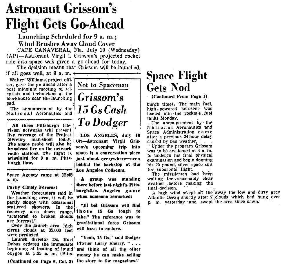 — *Гриссом будет во втором космическом запуске (It's Grissom In Second Space Shot) (на англ.) «Evening Independent», 17.07.1961 в jpg — 385 кб