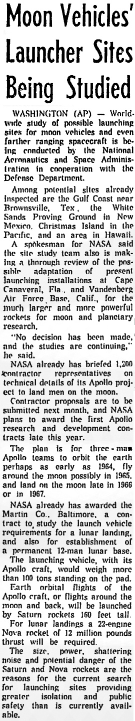 — *Космическая фирма обдумывает строительство завода в Калхуне (Space Age Firm Studies Calhoun For Factory Site) (на англ.) «The Victoria Advocate», 1.08.1961 в jpg — 255 кб