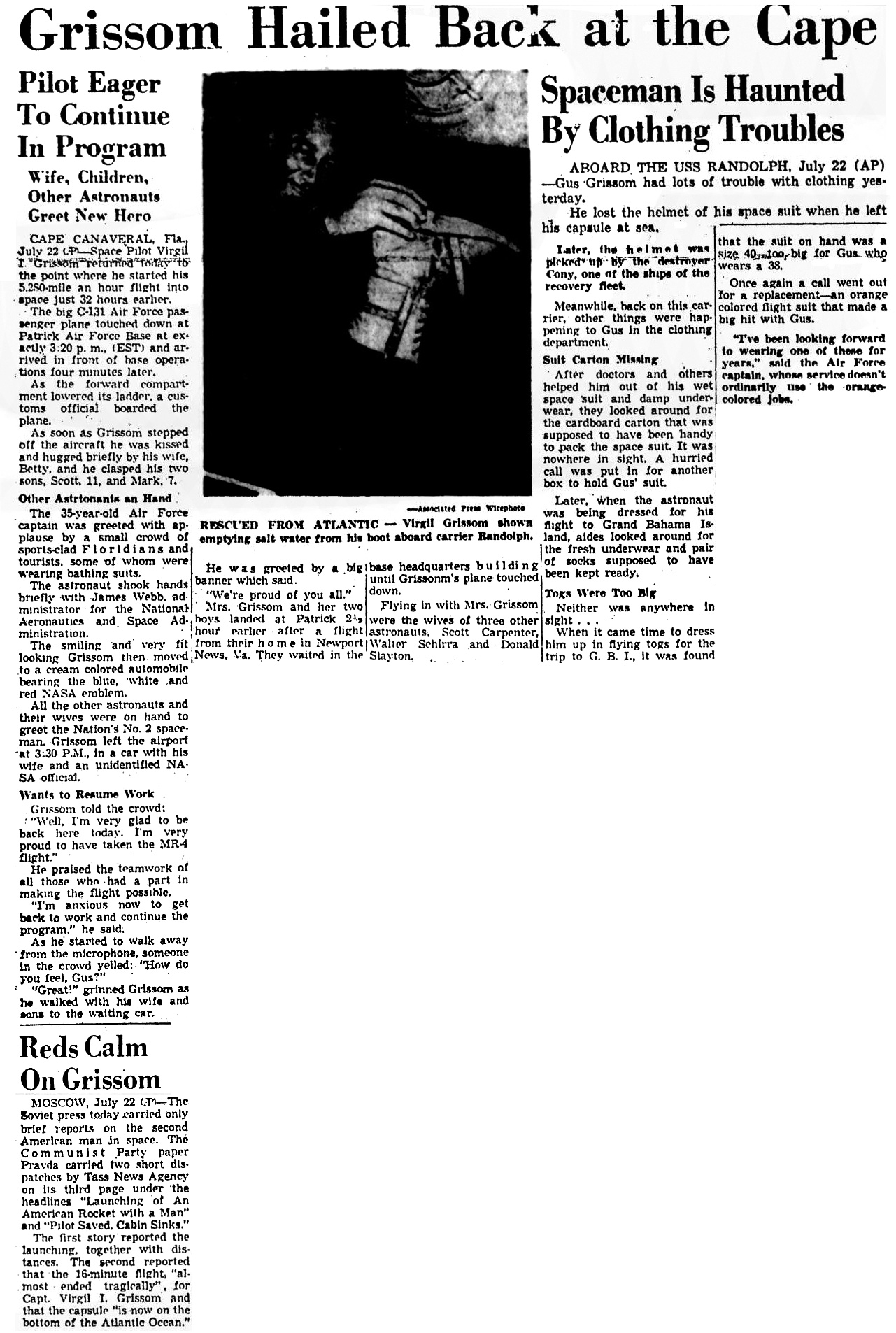 — *Гриссом и космический босс (Grissom And Space Boss) (на англ.) «The Windsor Star», 22.07.1961 в jpg — 792 кб
