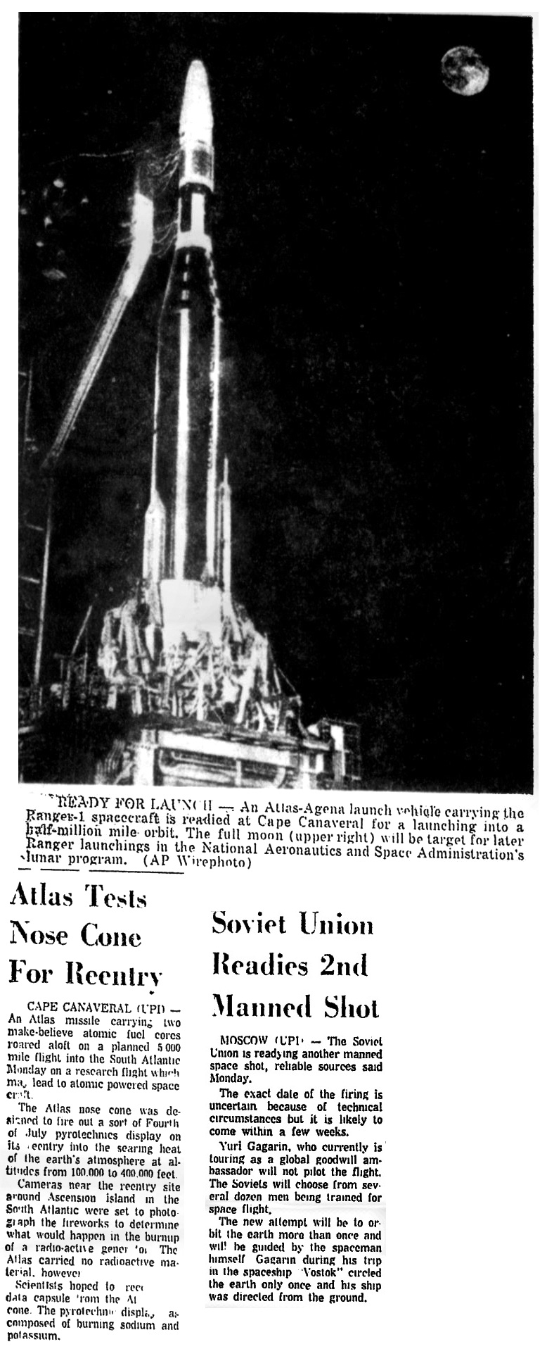 — *Сообщается о спешке с военным спутником (War Satellite Rush Reported) (на англ.) «Spokane Daily Chronicle», 24.07.1961 в jpg - 64 кб