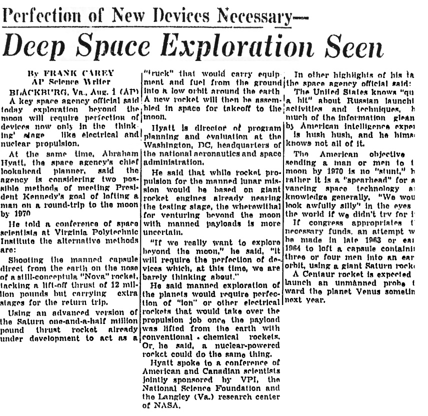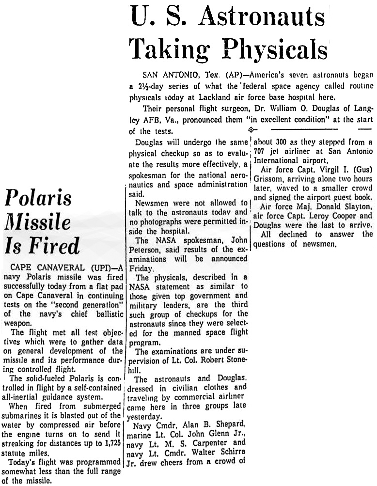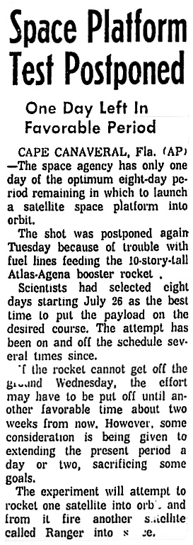 — *Полет «Атласа» оказался красочен (Test flight of Atlas missile proves colorful) (на англ.) «Ellensburg Daily Record», 1.08.1961 в jpg — 302 кб