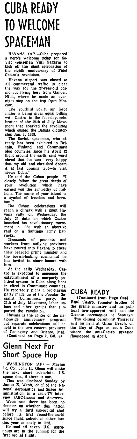 — *Куба готова приветствовать космонавта (Cuba Ready To Welcome Spaceman) (на англ.) «The Florence Times», 24.07.1961 в jpg - 319 кб