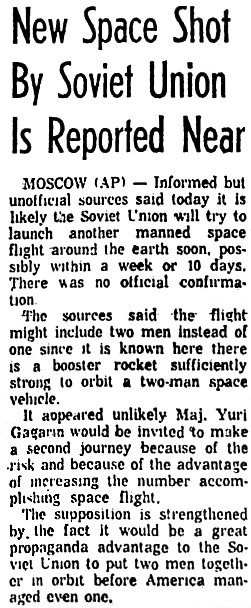— *Советы представили сведения о космическом запуске (Space Shot Data Given by Soviets) (на англ.) «The Spokesman-Review», 24.07.1961 в jpg - 393 кб
