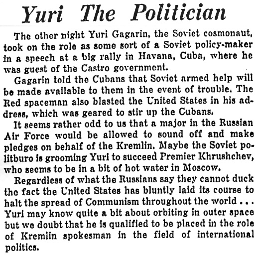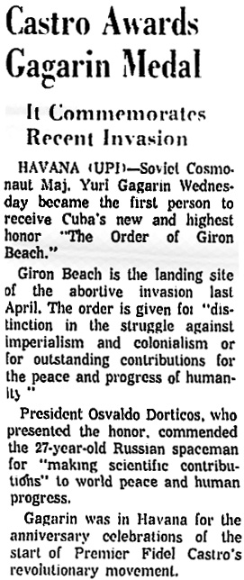 — *Гагарин возглавит парад в Гаване (Gagarin To Lead Parade In Havana) (на англ.) «Lewiston Evening Journal», 25.07.1961 в jpg — 167 кб