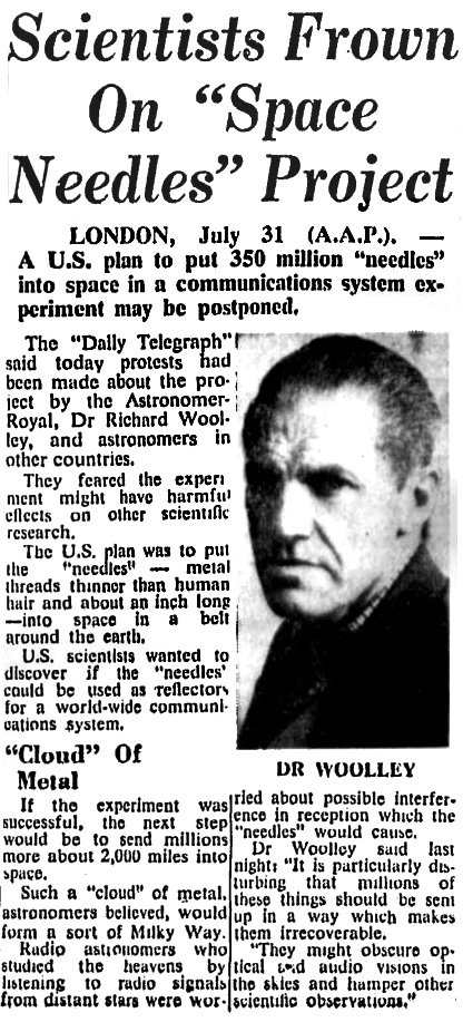 Газета «Дэйли Телеграф» сообщила, что королевский астроном доктор Ричард Вулли и астрономы других стран протестуют против этого проекта.