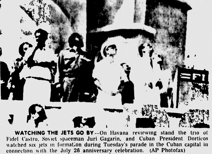 — *Гагарин смотрит в Гаване на марш 70'000 человек (Gagarin Sees 70,000 March In Havana) (на англ.) «The Blade», 25.07.1961 в jpg — 743 кб