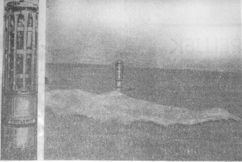 Чтобы состав воздуха внутри баллона был точно таким же, как и в наружной атмосфере, пробу берут в тот момент, когда скорость «выстреленного» контейнера снижается до 50— 70 метров в секунду. На высоте 10-12 километров над падающим контейнером автоматически раскрывается парашют. Ветер может отнести его на большое расстояние от места пуска ракеты. Иногда его приходится разыскивать часами. Чтобы хрупкие стеклянные сосуды не разбились в момент приземления, контейнер снабжен хорошей амортизацией. Снизу к нему приделан гофрированный конус, складывающийся гармошкой и смягчающий удар о землю. На конусе — специальные штыки, которые вонзаются в землю. Торчащий вертикально цилиндр высотой в человеческий рост легче найти.