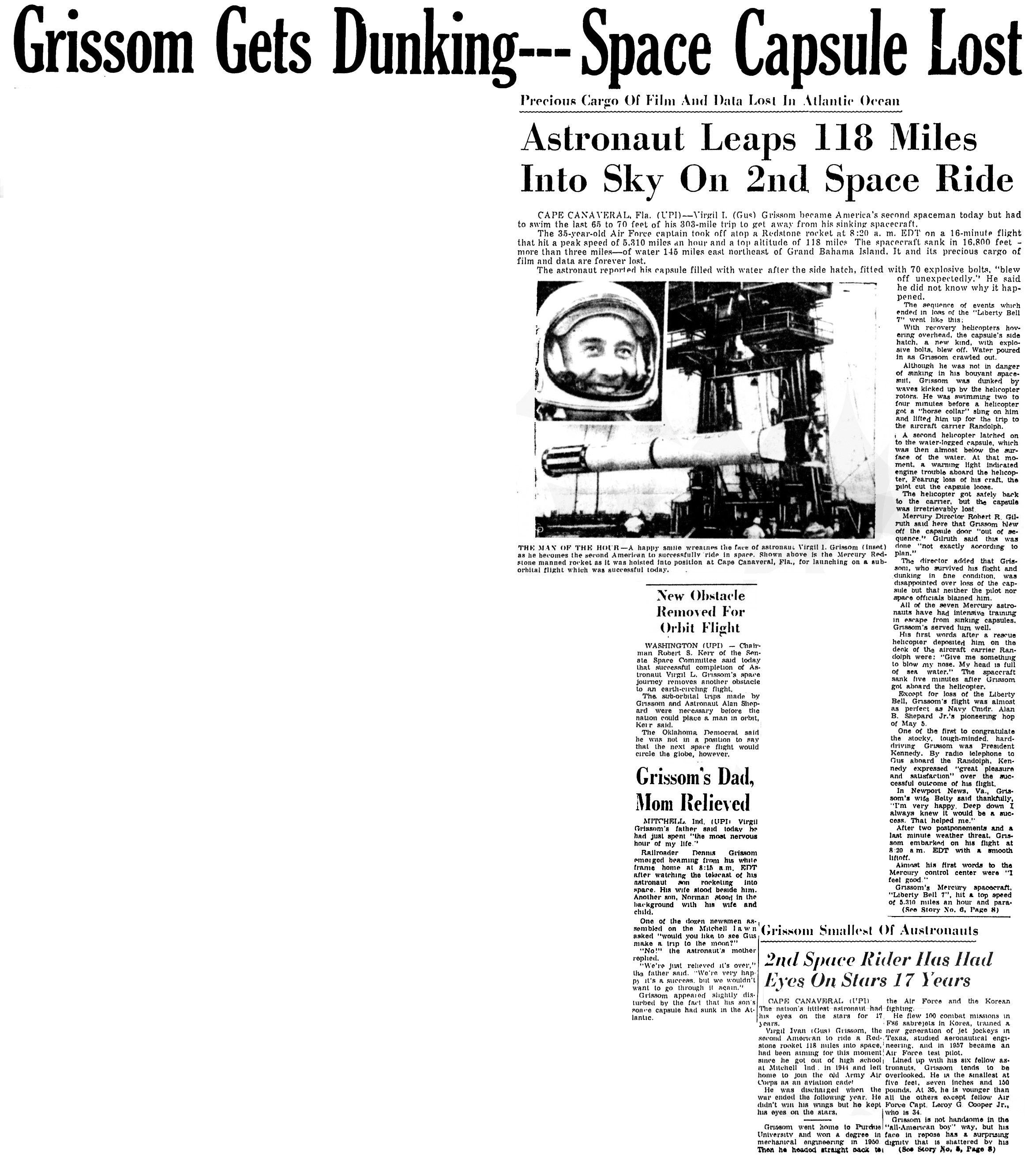 - *Капитан Вирджил А. Гриссом (сайт со сканами не открывается) (на англ.) «The Owosso Argus-Press», 21.07.1961 в jpg - 66 кб