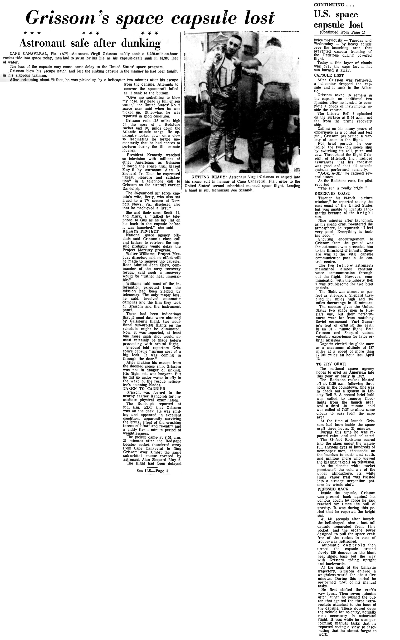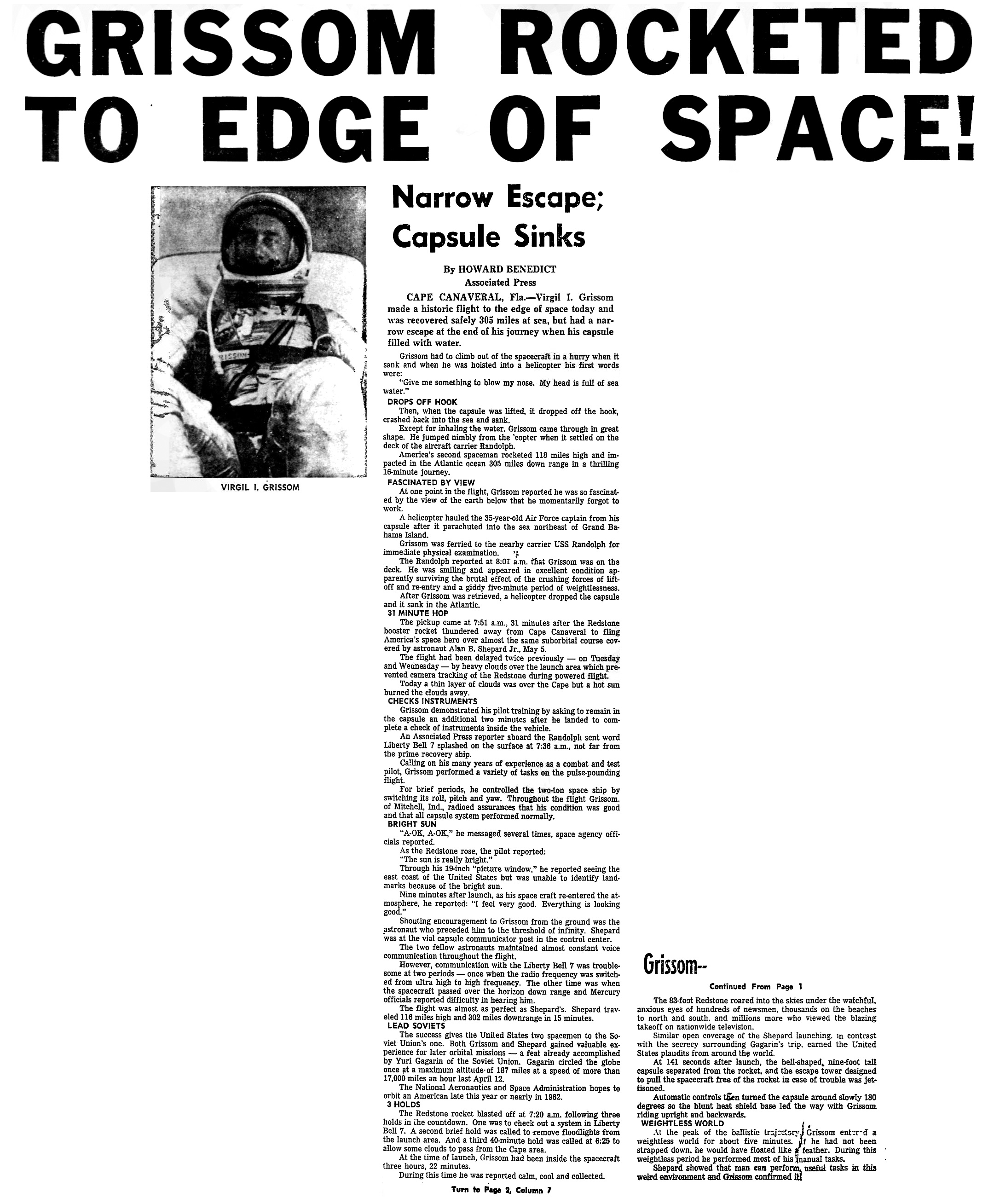 — *Вирджил А. Гриссом (Virgil I. Grissom) (на англ.) «Warsaw Times-Union», 21.07.1961 в jpg - 1,01 Мб